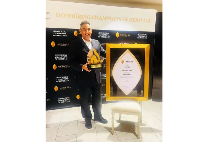 Cape Heritage Museum curator Igshaan Higgens accepts the Heritage Education award at the National Heritage Council Golden Shield Awards, held at the Artscape.